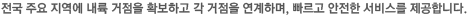 경인ICD, 부산진역, 아포역, 대야역, 부강역, 광양항역 등 전국의 주요거점을 아우르고 있으며, 컨테이너, 광학원료, 산물 등의 분야에서 이상적인 운송 서비스를 제공하고 있습니다.
